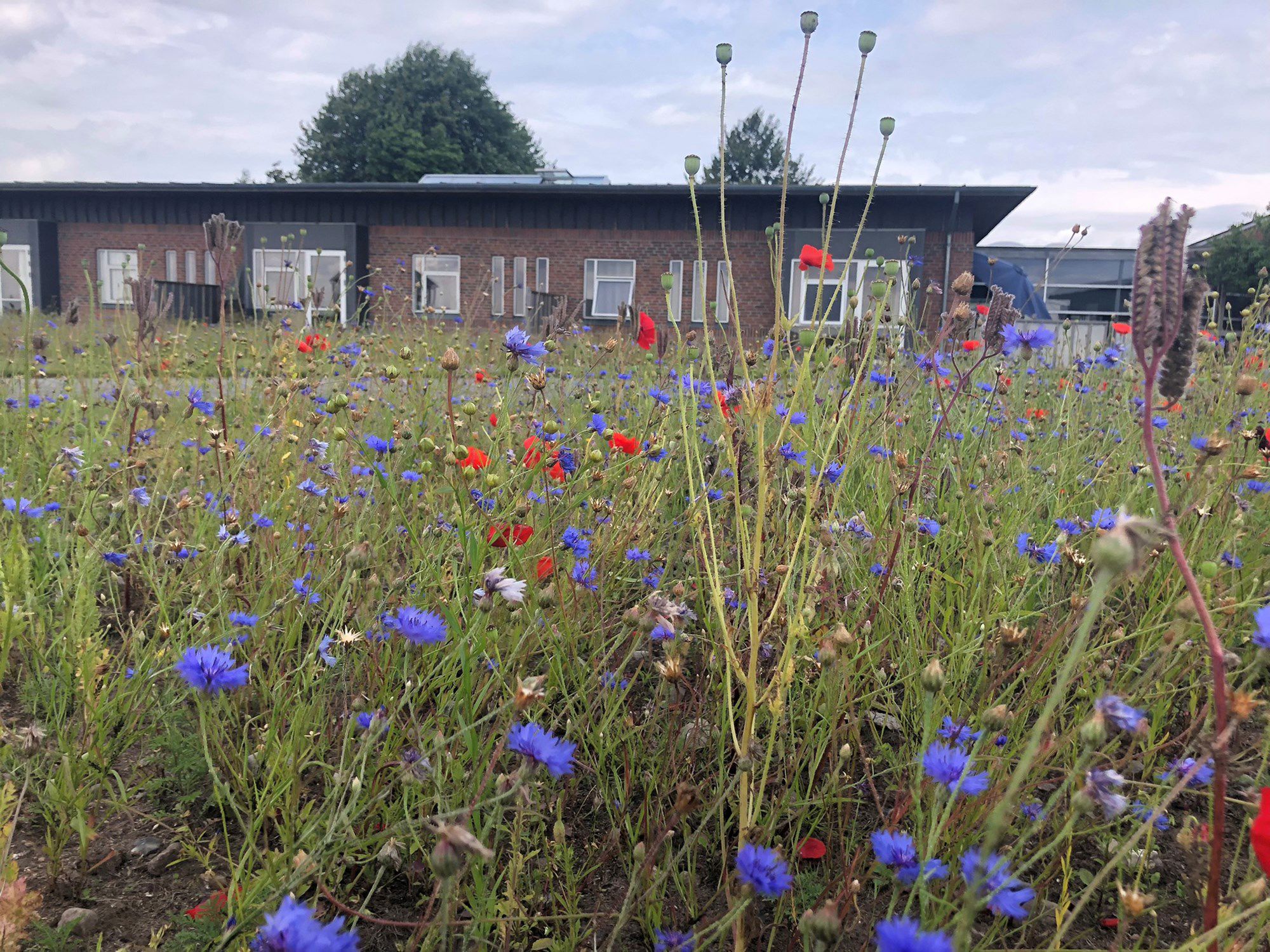 Vi giver blomsterfrøene - en vild blomstereng-blanding med mange forskellige hjemmehørende arter med både ét og flerårige urter. I skal selv betale entreprenøren for jordbearbejdningen og selve såningen.